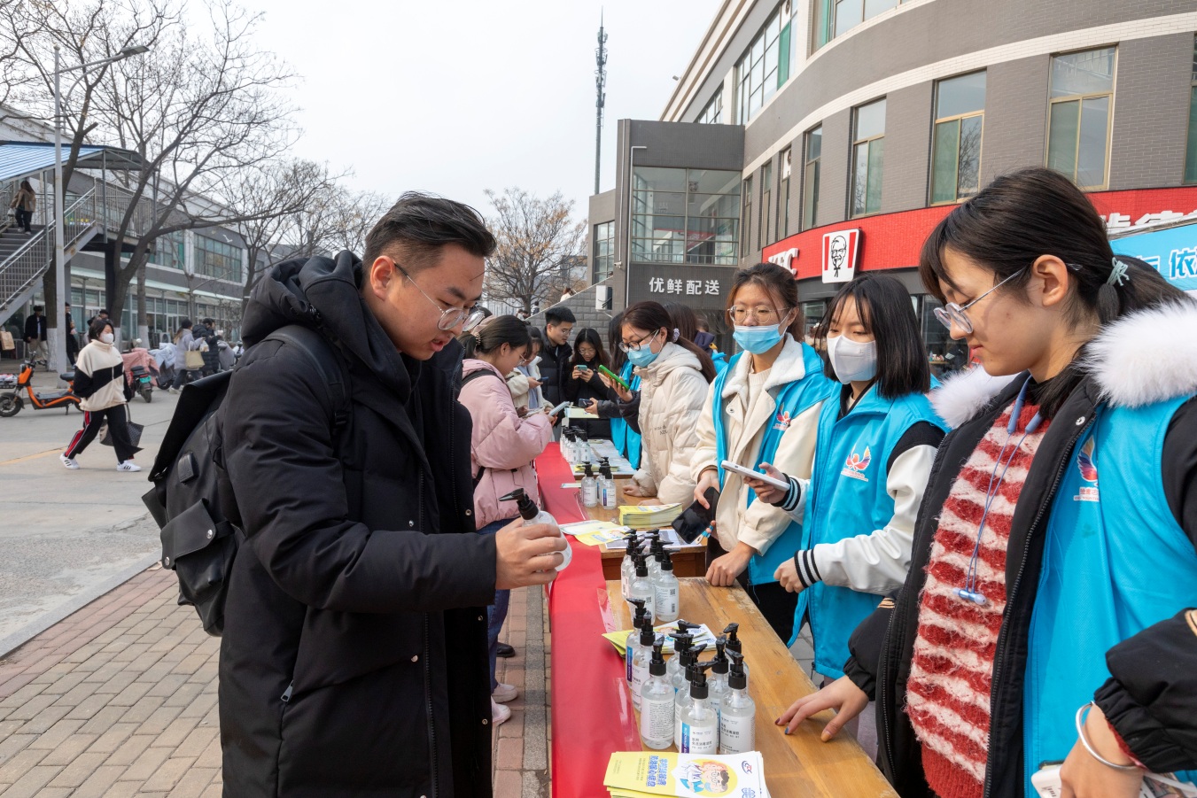 鉴于今冬疫情反复、多点散发的严峻态势,后勤管理处将冬季常态化疫情防控作为重要着力点,持续加大疫情防控工作力度,严格落实各项防疫工作任务,毫不松懈落实疫情防控责任。着力加大人流密集的重点场所和各类密闭空间的消毒通风,加大校内各类人群的疫情防控培训及应急演练,扎实做好疫苗(加强针)接种、核酸抽检等工作,同时号召全校师生充分认识冬季防疫严峻形势,时刻绷紧疫情防控安全弦。活动现场,校医院还准备了医用免洗消毒凝胶,免费向师生发放。
