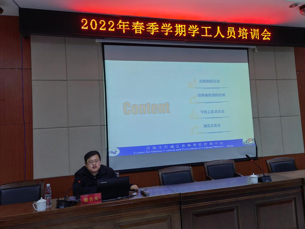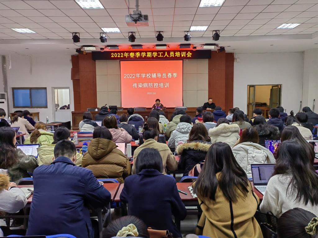 为贯彻落实《“健康中国2030”规划纲要》,大力宣传春季传染病防治知识,动员全体师生共同关注传染病防治问题,进一步推进我校传染病防控工作,2月24日,我校学生工作处与后勤管理处联合开展了2022年春季学期学工人员传染病防控培训。学校党委委员、副院长李玉英出席活动,各二级学院副书记、辅导员,后勤校医院、公寓管理人员等近200人参加了培训。历城区疾控中心副主任孙增勇一行三人受邀出席指导。活动由学生工作处副处长李洪全程主持。