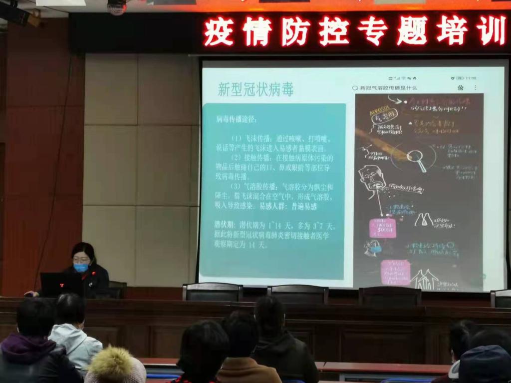 为切实保障师生安全与健康,确保校园疫情防控及各项工作平稳有序开展,结合当前省市疫情防控形势,3月29日,后勤管理处分批组织学生公寓区物业员工及餐厅员工开展防疫知识和应急处置培训,校医院医师李蕊主讲。