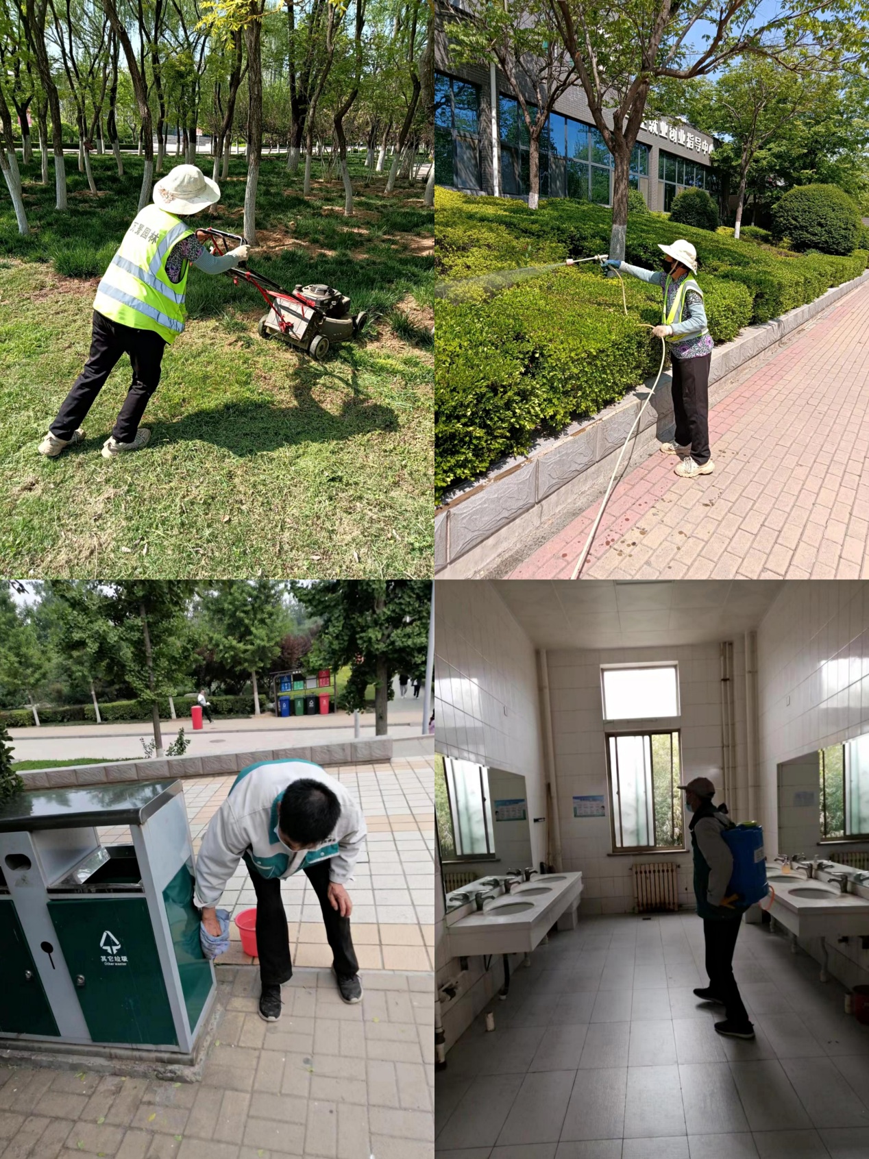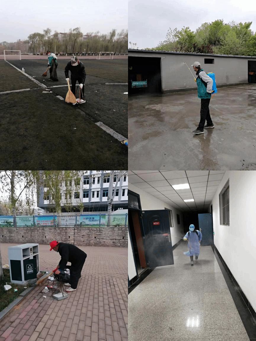 为减少人员流动,校园封闭管理期间部分保洁人员留校,物业管理中心细化校园保洁工作要求,实行全员备勤,在校物业员工主动担起责任,身兼数职,轮流值日,清扫垃圾、擦拭玻璃、更换纱窗、喷洒消杀、垃圾清运、绿化养护等,在抓实日常工作的基础上,加大了对门把手、水龙头、电梯按钮等重点部位的清洁消毒,全面保障校园环境卫生,切断病毒在校园的传播媒介,防止各类传染病在学校的扩散与流行。