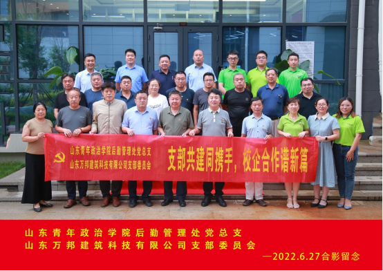 后勤管理处党总支与万帮建筑科技有限公司支委开展党建共建活动。双方就党建共建及党组织建设规划进行座谈,签订了《党建共建协议书》,最后参观了万帮集团党建文化走廊。