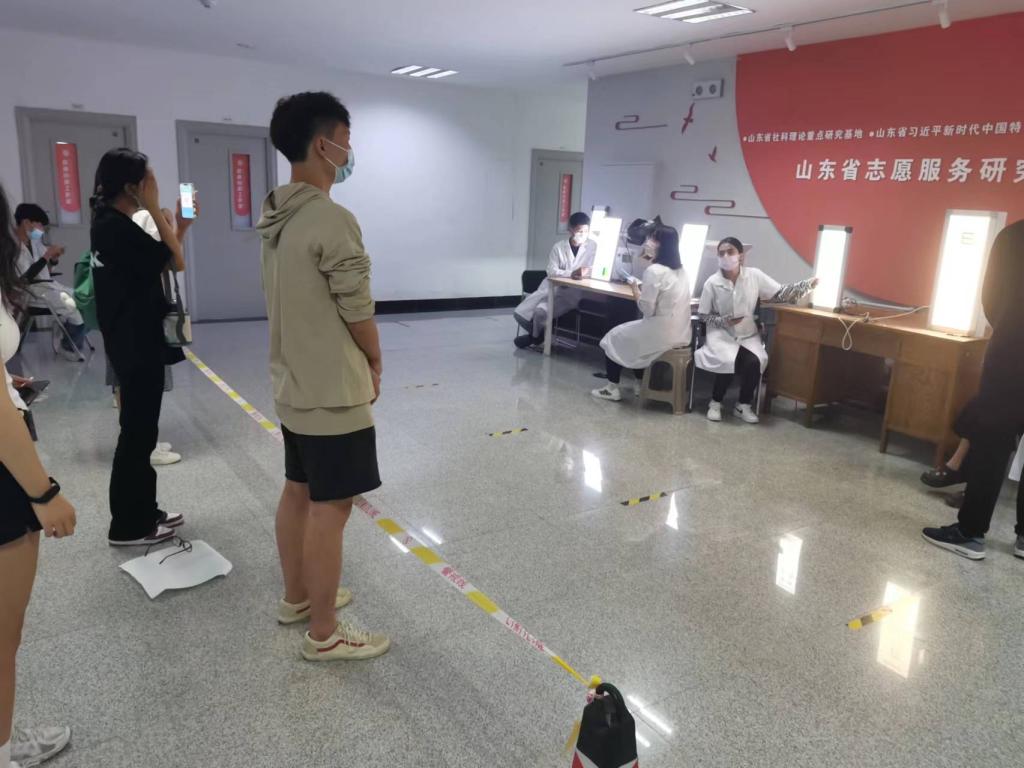 为保障新生入学体检工作高效有序顺利进行,同时确保疫情防控不放松,后勤管理处校医院与体检承接单位济南临港医院提前对接,认真研讨工作方案,细化体检各项工作流程和细节,做好人员调配、物资储备工作,严守疫情防控和医疗保障关。医护人员于体检前一天来到躬行楼五楼东区大厅进行场地布置,后勤管理处协调物业、修建等单位有效保障体检设施、水电供应以及场地环境消杀,确保体检工作准时顺利进行。