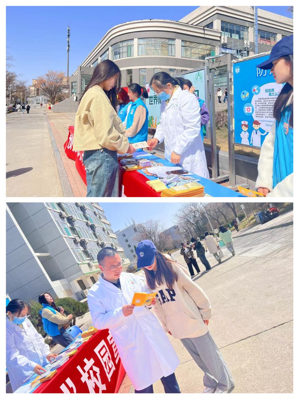 为进一步加强学校结核病防控工作,切实提高我校师生结核病防治知识水平,营造安全健康美丽的校园环境,3月21日,由后勤管理处、外国语学院联合举办的“预防结核,守护健康”结核病防控主题宣传活动在北苑餐厅广场举行。