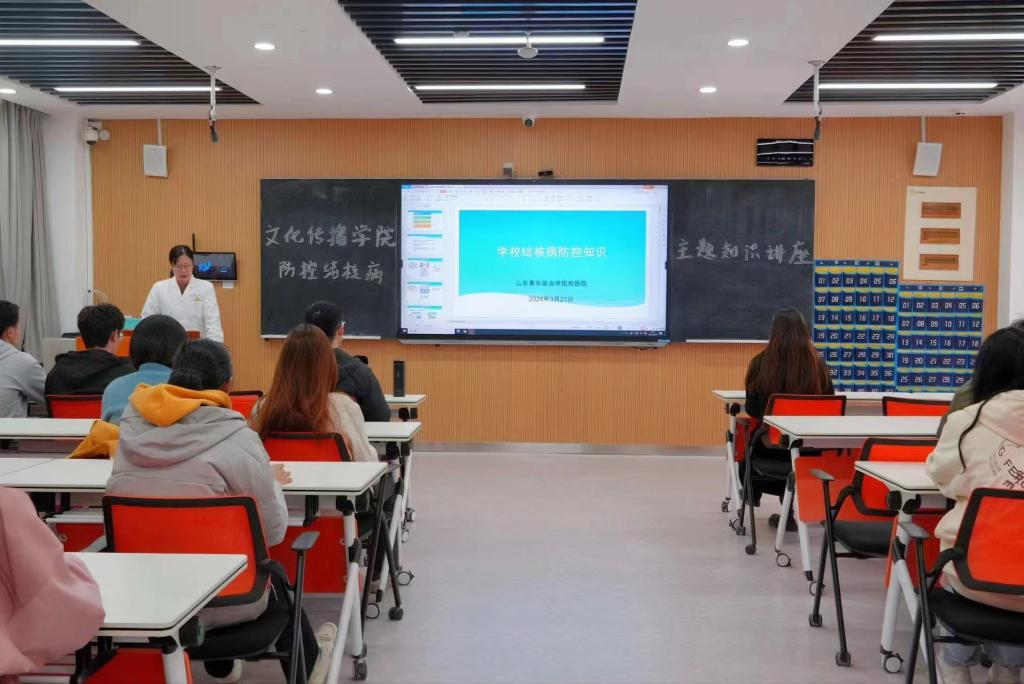 3月24日是第29个“世界防治结核病日”,今年的主题是“你我共同努力 终结结核流行”。为认真贯彻落实结核病防治政策,进一步加强结核病核心知识宣传,保障在校师生身体健康和生命安全,根据济南市卫生健康委员会《关于组织开展2024年世界防治结核病日宣传活动的通知》(济卫函〔2024〕9号)要求,后勤管理处校医院走进二级学院,开展专题讲座,加大肺结核等校园常见传染病的知识普及和宣传。