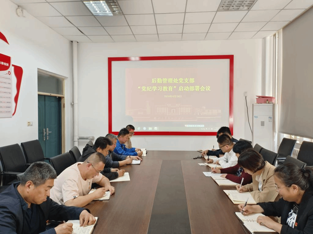 4月18日,后勤管理处党支部组织召开“党纪学习教育”启动工作部署会议,传达学习中央、学校党委关于开展党纪学习教育部署的要求,部署启动党支部党纪学习教育工作。后勤管理处党支部副书记聂栓琴主持会议并讲话,党支部全体党员参加了会议。