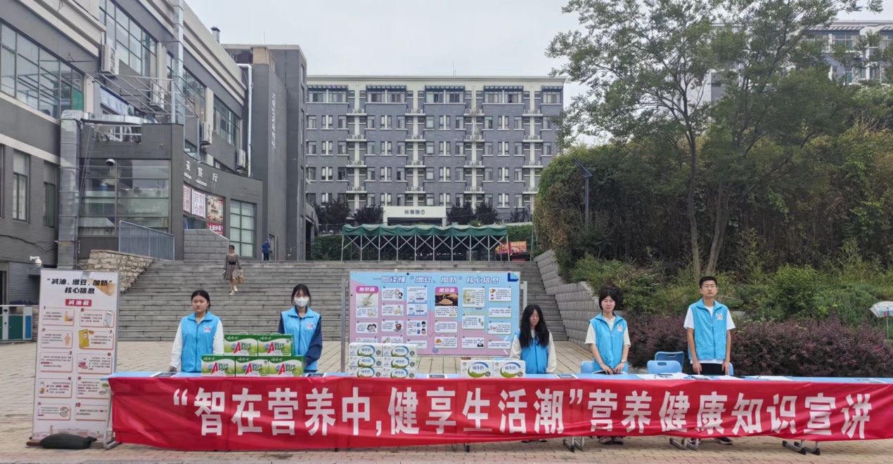 活动现场布置营养知识宣传条幅及展板,志愿者们向参加活动的学生宣讲合理膳食、“增豆加奶”、控制油脂等营养健康知识,帮助广大学生充分认识到合理饮食、均衡营养的重要性,使其掌握科学搭配、合理膳食的有效方法。活动现场设置了有奖问答环节,志愿者们引导同学们积极参与健康知识答题,并准备了奶豆制品作为奖品,取得了良好的活动效果。