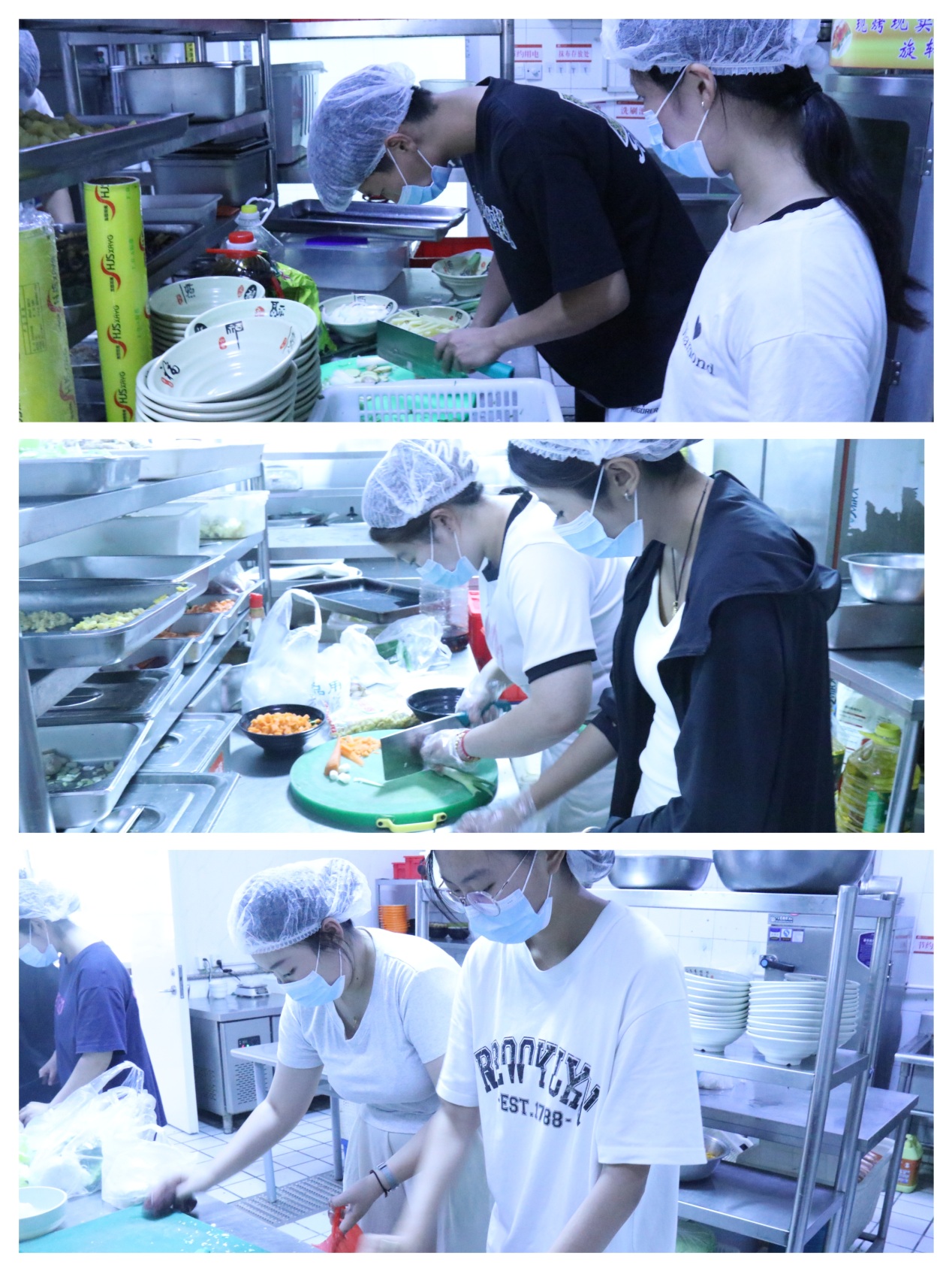 “厨艺大赛”参赛者在后厨制作美食
