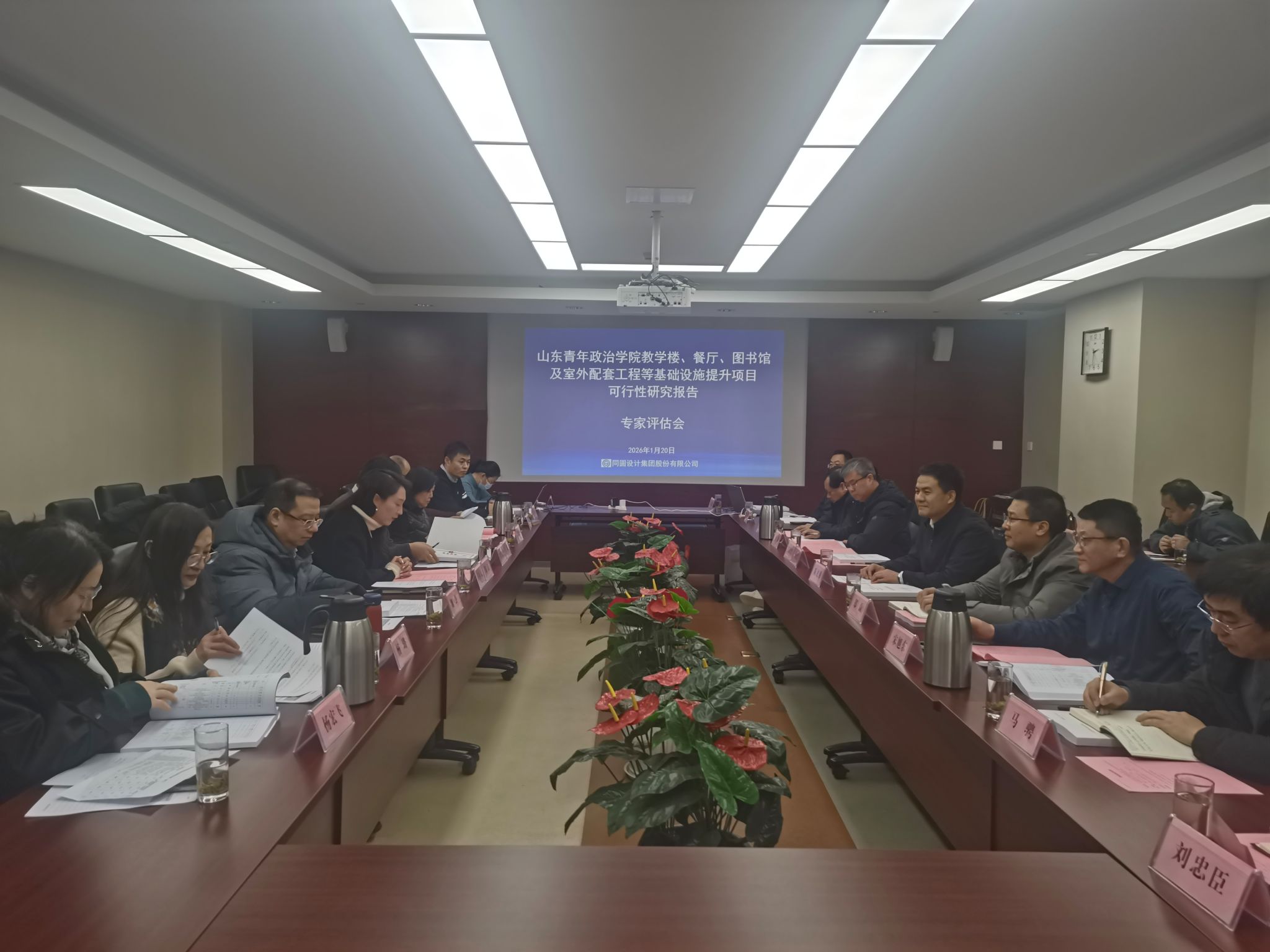 1月20日下午,山东青年政治学院教学楼、餐厅、图书馆及室外配套工程等基础设施提升项目可行性研究报告专家评估会顺利举行。省发展改革委社会处副处长王波,同圆设计集团股份有限公司技术管理总监丁常虹、评审中心主任郑洁,特邀专家评委,学院党委委员、副院长陈龙溪出席会议。